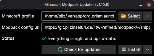 Minecraft Modpack Updater is a simple tool to install and update a modpack to a selected minecraft profile by a selected modpack configuration file. It downloads a config file via https and checks the version there and what files has been changed and download the updateded files via a given link from the config.