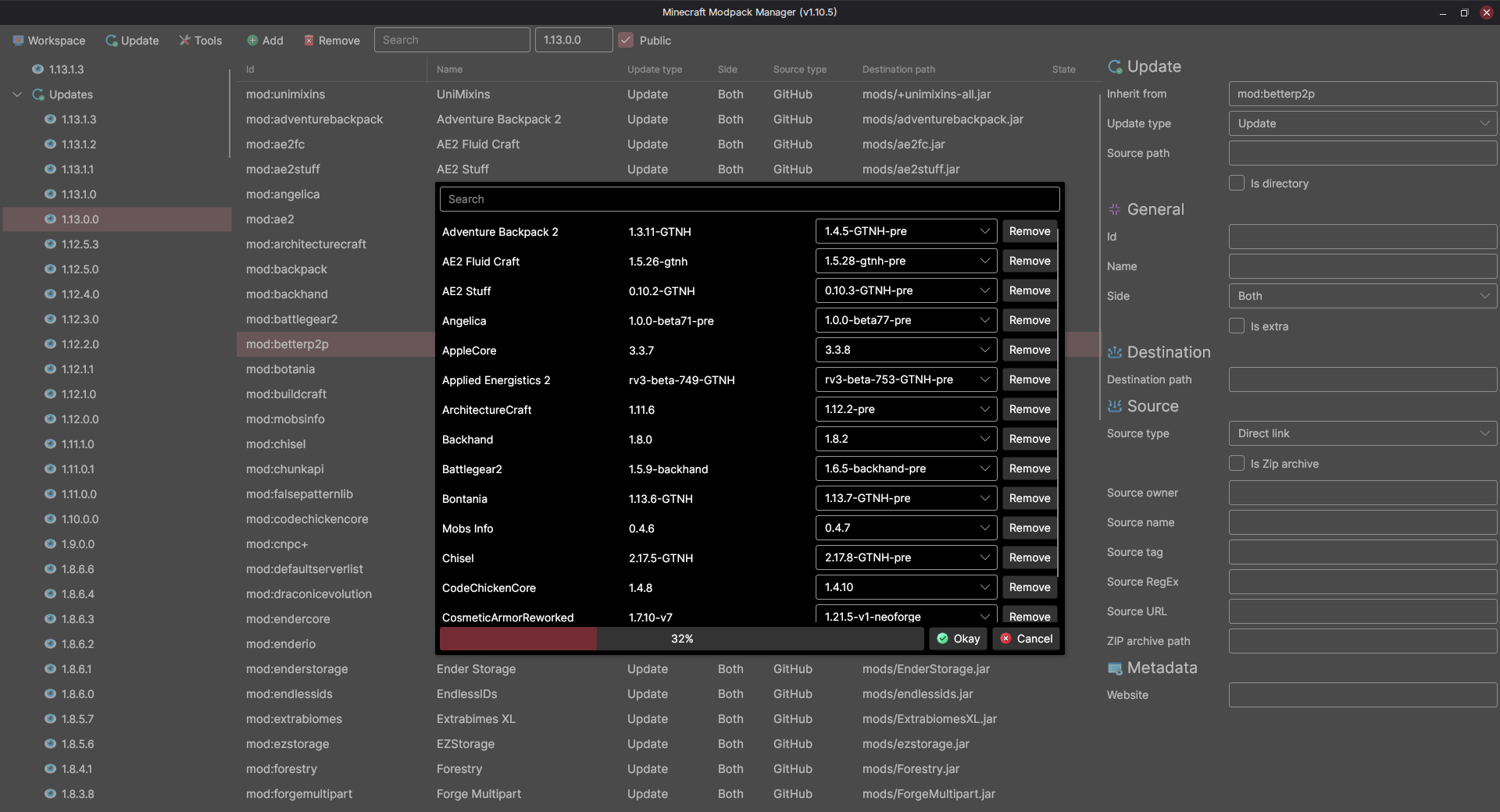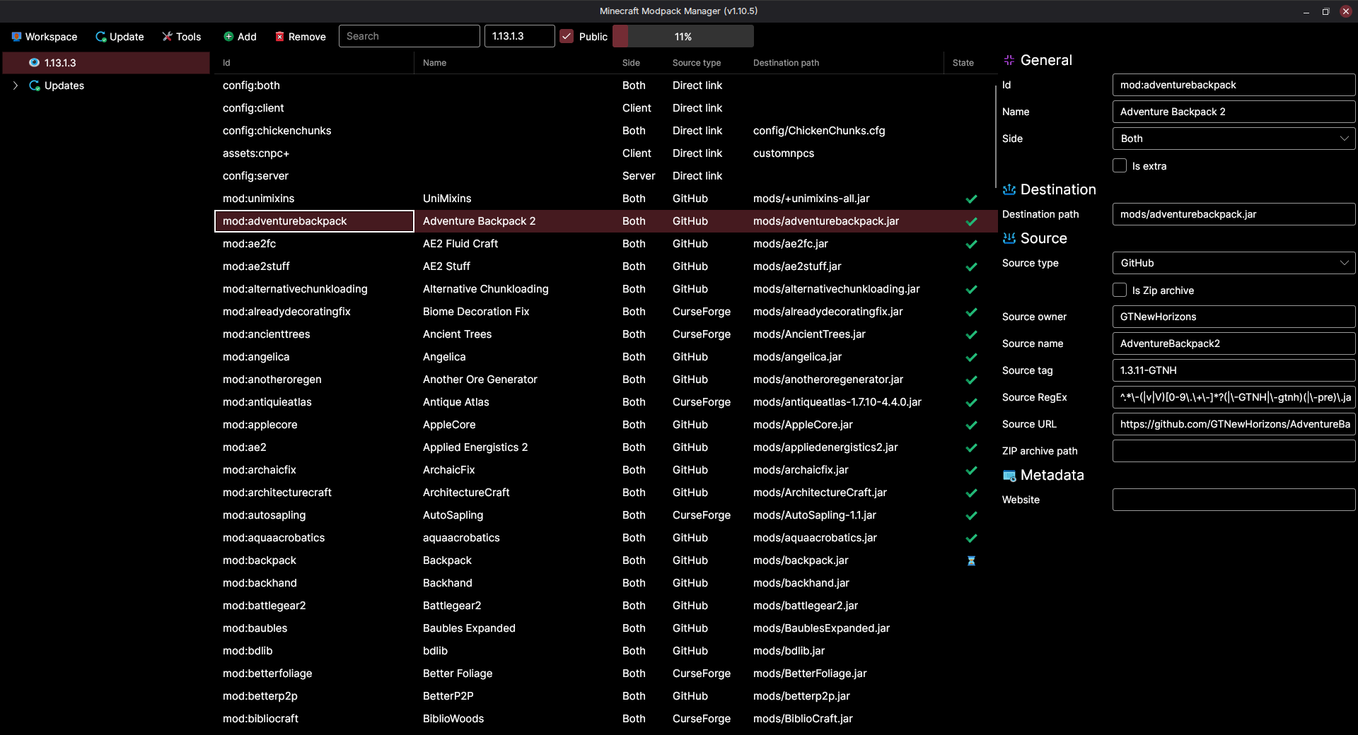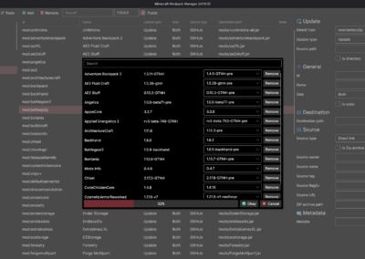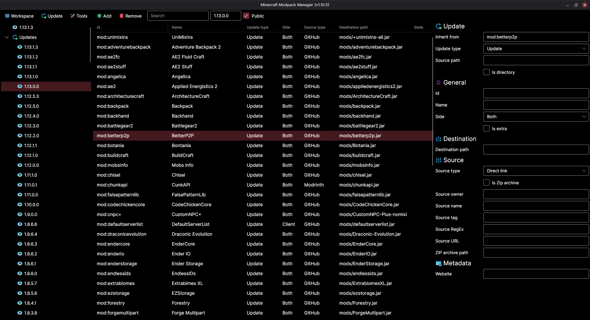 Additionally, for administration of a modpack deployed with the modpack updater, there is an modpack manager. It offers you an user interface for create, manage and maintain mod updates, configs and extra files.